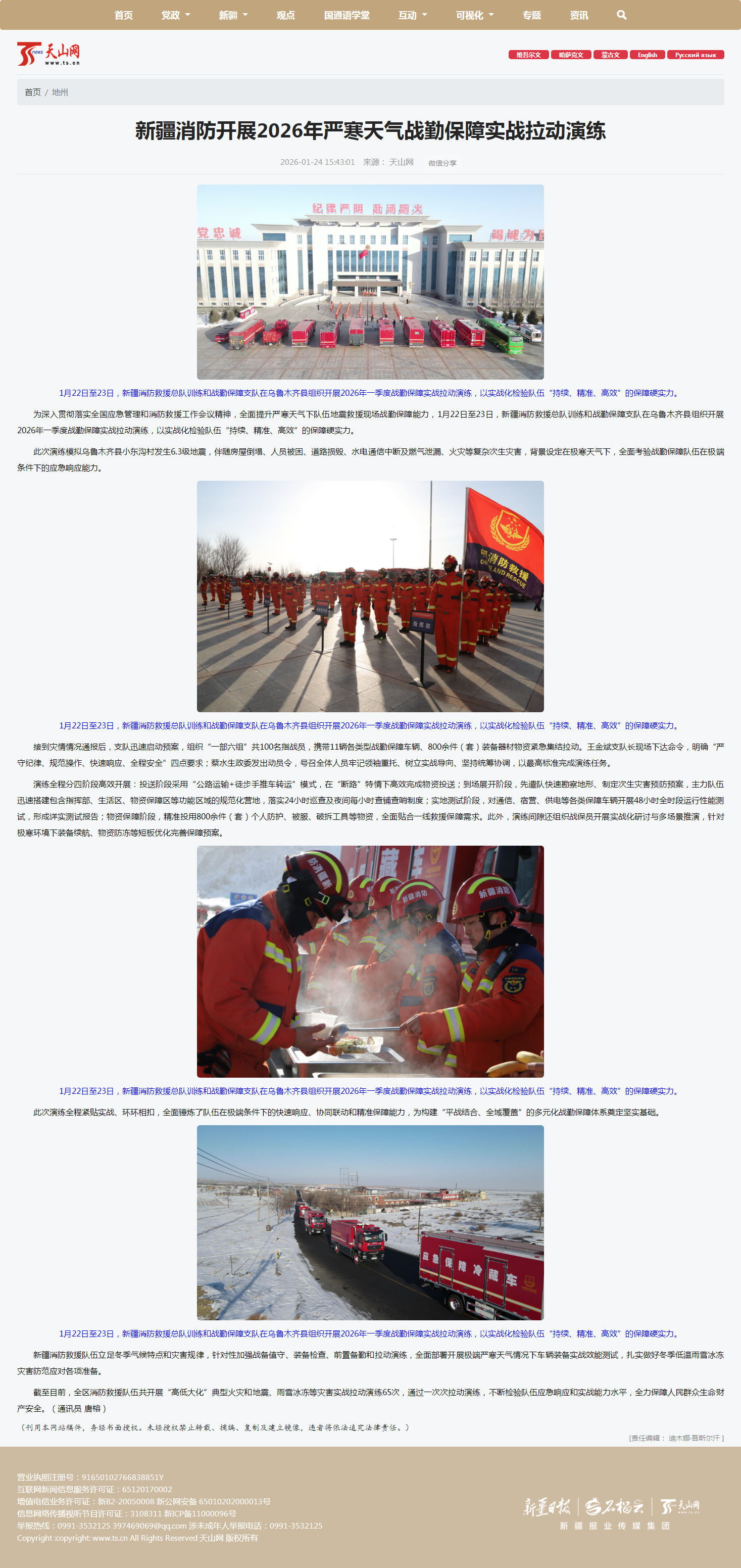 天山网:新疆消防开展2026年严寒天气战勤保障实战拉动演练